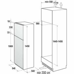Energetska klasa A+/F, Dizajn/Boja: Bijela, Otvaranje vrata Lijevo/desno promjenjivo otvaranje vrata, Pant vrata Klizni panti vrata, Materijal vrata Metalna vrata, Obujam rashladnog dijela: bruto/neto 185 / 183 l, Obujam zamrzivačkog dijela: bruto/neto 49 / 49 l, Karakteristike FastFreeze sklopka za brzo zamrzavanje, Oprema hladnjaka Standardno osvjetljenje sa strane, Broj staklenih polica: 3, Posuda za jaja: 1, Dimenzije aparata (VxŠxD) 144,5 × 54 × 54,5 cm, Dimenzije ugradbenog prostora min-max (vxšxd) 144,5-145 × 56-57 × 55 cm