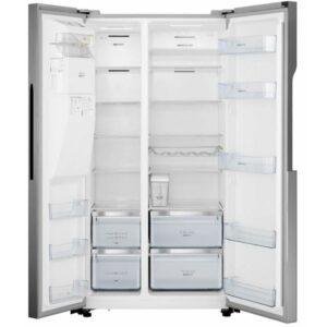 A+/F, Dizajn/Boja: Metalik siva, Materijal vrata lakirani lim, Obujam rashladnog dijela: bruto 386l, neto 368 l, Obujam zamrzivačkog dijela: bruto 226l, neto 167l, Karakteristike SuperCool brzo hlađenje, LED osvjetljenje, SensoTech, Inverterski kompresor, Dispenzer vode, Ledomat, LED zaslon, FastFreeze brzo zamrzavanje, Zvučni signal za otvorena vrata, Dvije posude za povrće, Staklene police, Namjestive noge, Dimenzije aparata (VxŠxD) 179,3× 910 × 68,7 cm