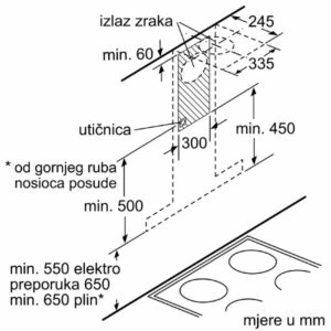 Za pricvršcivanje na zid iznad polja za kuhanje