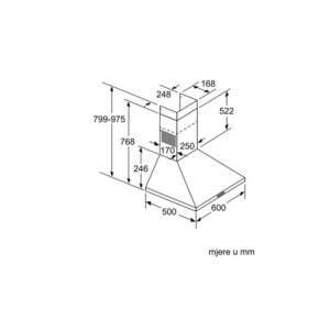 Dimenzije – odvod zraka (VxŠxG): 799-975 x 600 x 500 mm