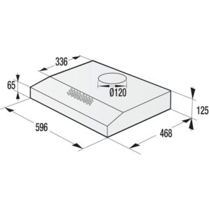 Odvodnja ili recirkulacija zraka, Maksimalni protok zraka pri odvodnji/recirkulaciji 200 / 115 m³/h, Promjer odvodne cijevi 12,5 cm, Upravljanje Mehaničko upravljanje, Upravljanje tipkama, Snaga Brzina ventilatora: 3, Osvjetljenje Osvjetljenje LED: 1 × 4 W, Akrilni filter, Dimenzije proizvoda (širina x dubina 59,6 × 46,8 cm