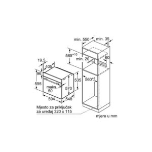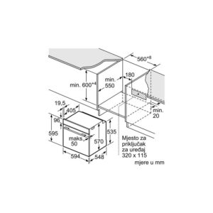 Dimenzije niše (VxŠxD): 560 mm – 568 mm x 585 mm – 595 mm x 550 mm