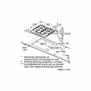 Potrebna veličina niše za ugradnju (VXŠXD) 45 x 560-562 x 480-492 mm