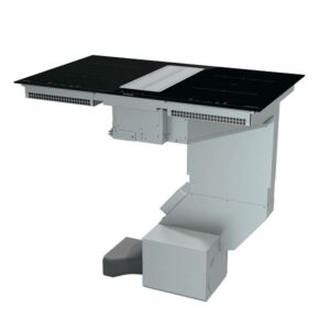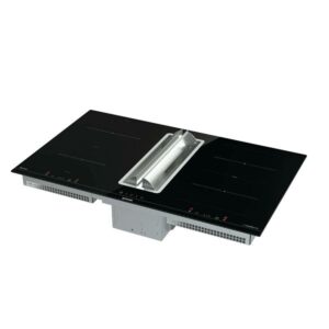 Indukcijska ploča sa integriranom napom, Areaflex, odvodnja (620m3/h) ili recirkulacija zraka (332m2/h, buka nape 68dB, Broj zona za kuhanje lijevo dole: 160 mm, 1,4kW, indukcija , lijevo gore: 200 mm, 3kW, indukcija , desno dole: 210 mm, 1,85kW, indukcija, sredina straga: 210 mm, 3 kW, indukcija