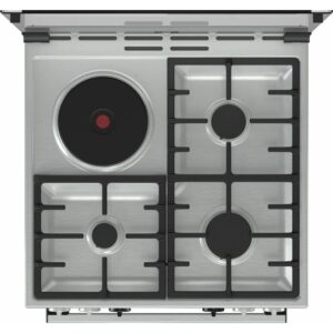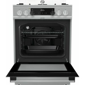 SilverMatte, Upravljanje Paljenje plinskih plamenika: Električno jednoručno paljenje plinskih plamenika, HomeMade oblik pećnice po uzoru na krušne peći, Multifunkcionalna pećnica BigSpace – 65 l, SuperSize, najveća upotrebljiva površina pečenja, Broj zona za kuhanje lijevo sprijeda: 46 mm, 1 kW, plamenik, , desno sprijeda: 94 mm, 3 kW, veliki plamenik, , lijevo straga: 180 mm, 2 kW, brzogrijuća ploča, , desno straga: 69 mm, 1,9 kW, srednji plinski plamenik, Karakteristike Osvjetljenje pećnice, Oprema Rešetka pećnice: 1, Žičane vodilice, Sigurnost 2-struko ostakljenje vrata pećnice s 1-strukom temperaturnom refleksijom (CompactDoor), Ventilator za hlađenje, Dimenzije aparata (VxŠxD) 85 × 60 × 60 cm, Potrošnja ovisno o načinu zagrijavanja 0,82 kWh (ventilatorsko), , 0,92 kWh (konvencionalno)