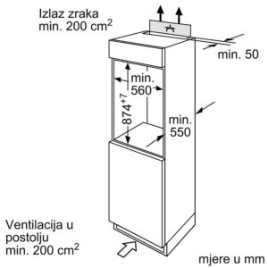 Potrebna veličina niše za ugradnju (VXŠXD) :880 x 560 x 550 mm
