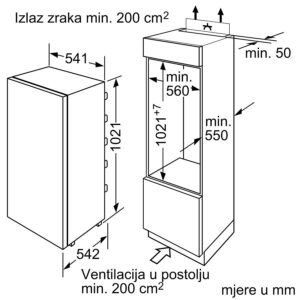 Potrebna veličina niše za ugradnju (VXŠXD) :1025.0 x 560 x 550 mm