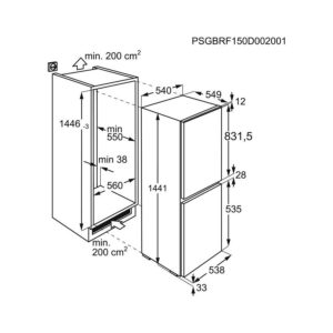 Ugradbeni kombinirani hladnjak 300 LowFrost sa ledenicom dolje, hladnjak 160 L, ledenica 57 L, Energetska klasa F, LOW FROST, 35 dB, Bijela vrata – desna ili lijeva, potpuna klizna ugradnja, elektronske kontrole na dodir u hladnjaku sa LCD ekranom, hladnjak sa 3 velike staklene police + 2 ladice za voće & povrće, FLEKSIBILNA ledenica sa 2 velike ladice, Dimenzije u cm: 144,1 V x 54 Š x 54,9 D