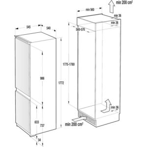 Energetska klasa A++/F, Dizajn/Boja: Bijela, Otvaranje vrata Lijevo/desno promjenjivo otvaranje vrata, Pant vrata Klizni panti vrata, Materijal vrata Metalna vrata, Obujam rashladnog dijela: bruto/neto 190 / 189 l, Obujam zamrzivačkog dijela: bruto/neto 73 / 71 l, Karakteristike FrostLess: manje nakupljanje leda u zamrzivaču, Ladica za povrće s kontrolom vlažnosti MoistControl, Oprema hladnjaka Posudica za jaja/led: 1 x 7, LED osvjetljenje na stropu, SpaceBox – velika ladica za zamrzavanje (38 l), Broj staklenih polica: 5, Nosač za boce, Dimenzije aparata (VxŠxD) 177,2 × 54 × 54,5 cm, Dimenzije ugradbenog prostora min-max (vxšxd) 177,5-178 × 56-57 × 56 cm